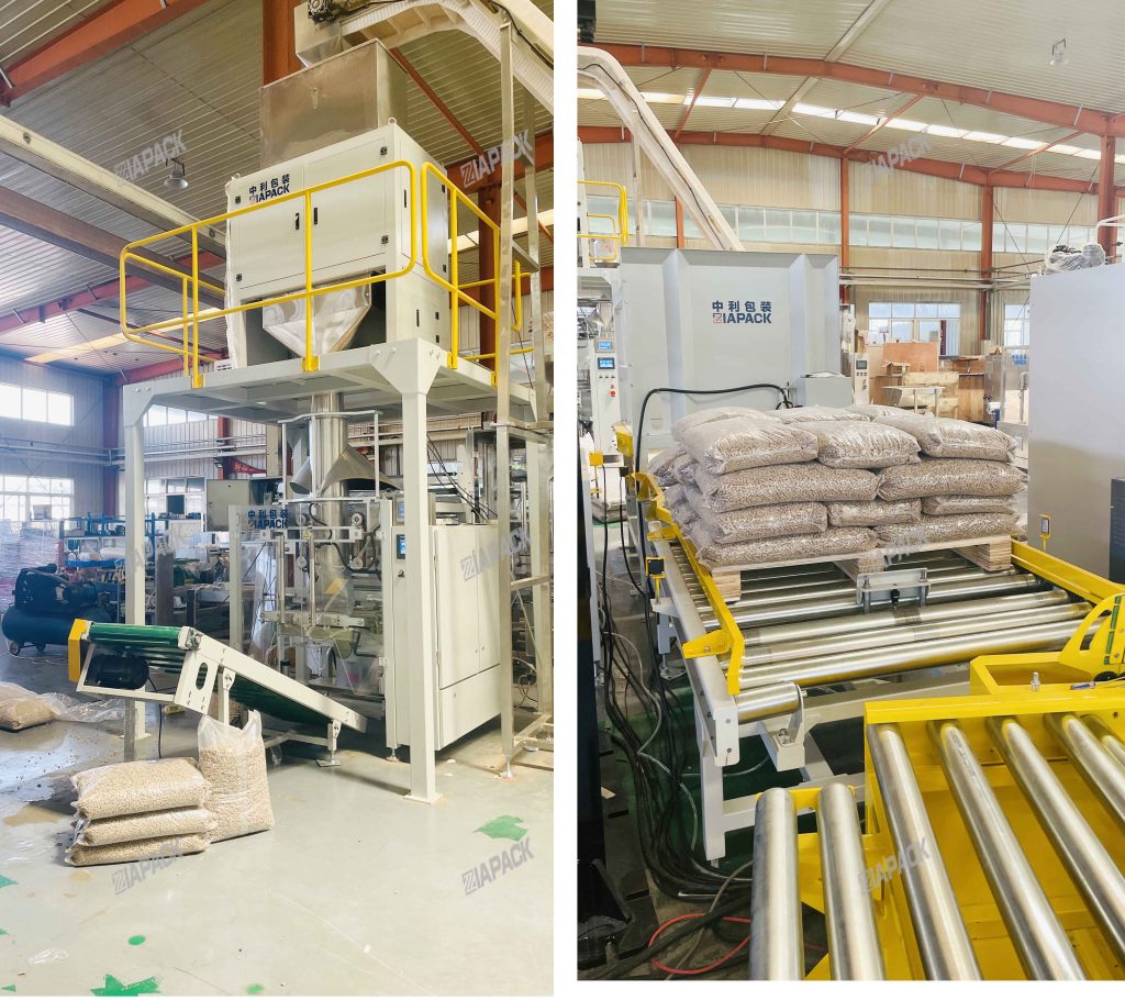 أنت هنا: منزل، بيت » أخبار » خط تعبئة وتعبئة الكريات الخشبية بوزن 15 كجم جاهز للتسليم