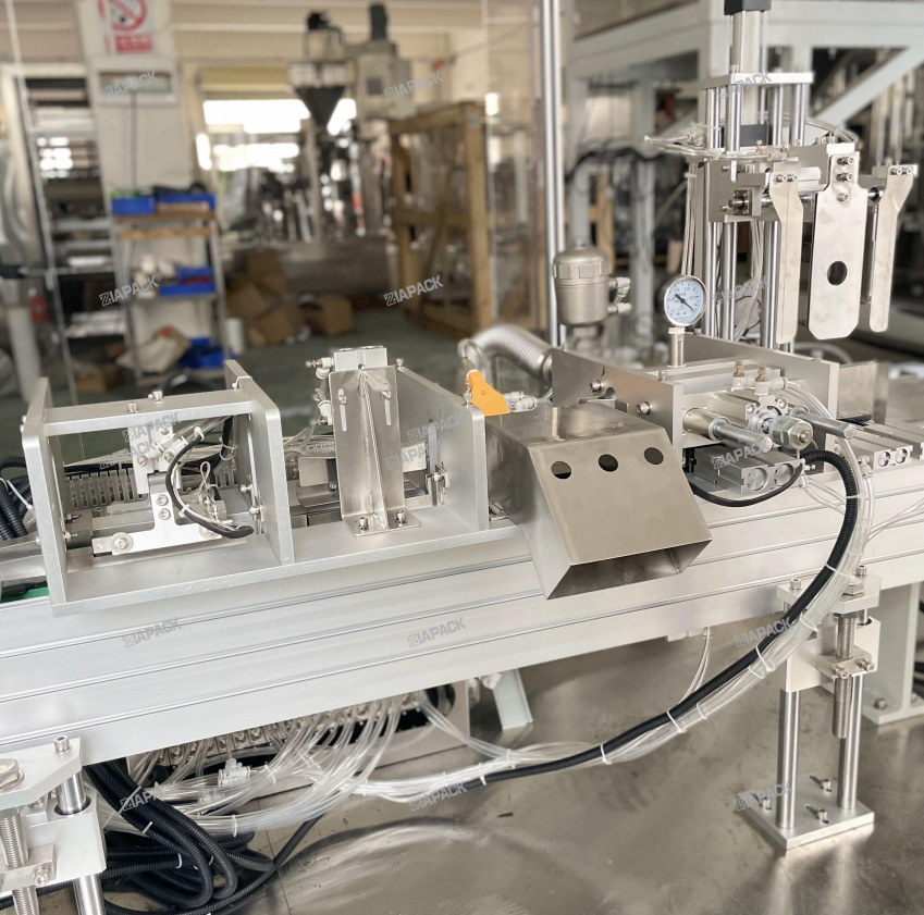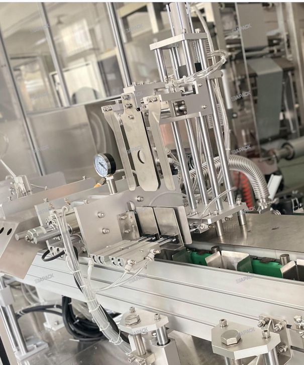 هذه الآلة هي تصميم خاص لصنع كيس مجمعة مع وضع الملصق العلوي. بعد الحقيبة الكاملة مع إسقاط المنتج على هذه الآلة ، ستحمل هذه الآلة الحقيبة ، وتذهب إلى كيس قابل للطي مرة واحدة ثم تلتصق بالملصق. SUS304 .PLC وشاشة تعمل باللمس تعتمدان من ماركة Siemens. وتعتمد الأجزاء الهوائية العلامة التجارية SMC. تتبنى المكونات الكهربائية الرئيسية العلامة التجارية Omron و Schneider. تعمل هذه الآلة مع آلة التغليف الأوتوماتيكية للوصول إلى أعلى الكيس النهائي ، ويمكن أن تصل هذه الآلة تلقائيًا إلى الوظيفة من الملصق مفصول ، إرسال الملصق. كاشف الملصق والضغط على الملصق.