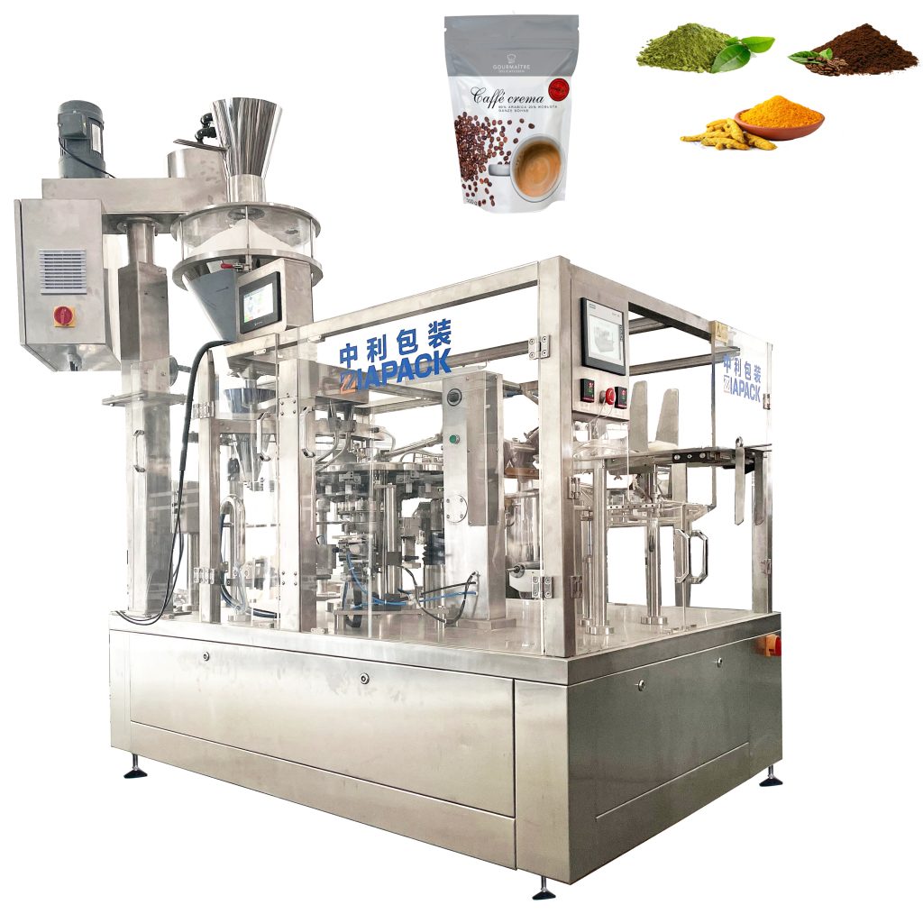 آلة التعبئة المعطاة للأكياس الدوارة مع الجرعات المختلفة (مثل الميزان متعدد الرؤوس ، حشو اوجير ، حشو السائل ، الخ.) ، يمكن أن تكون مناسبة للتعبئة التلقائية للحبيبات ، المسحوق ، السائل ، العجينة إلخ. هكذا.
