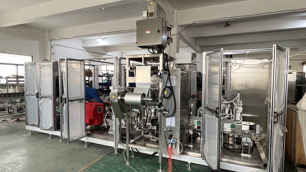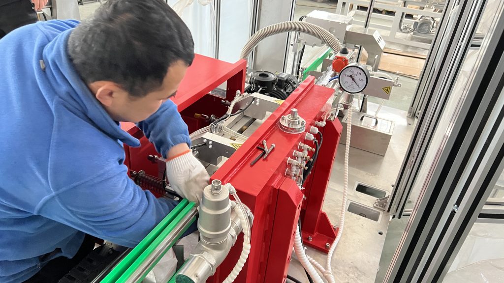 الآن الآلة جاهزة للتسليم وبعد بدء لقاء الفيديو مع العميل لفحص الماكينة الخط كله جاهز للتسليم.
