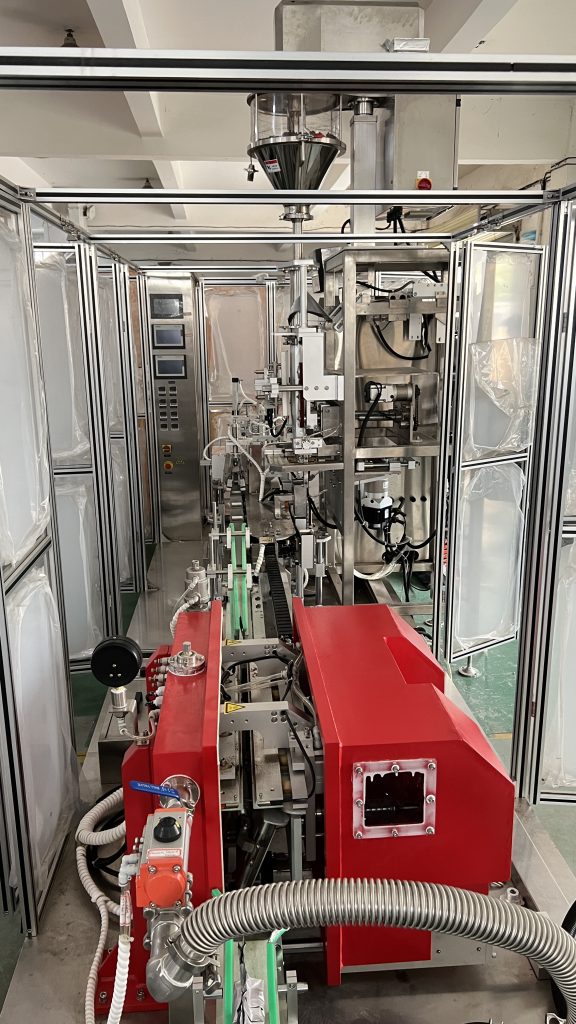 طلب عملاؤنا من إيران مجموعة واحدة من آلة تعبئة الأكياس ذات الفراغ الأوتوماتيكي من الطوب لـ 250 جرام من مسحوق القهوة. واتبع متطلبات العميل ، وقد قمنا بطلاء غرفة التفريغ باللون الأحمر كتحذير.