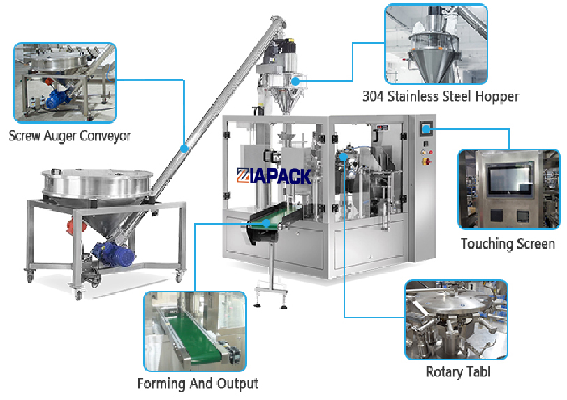 إنها مُجهزة بحامل Augur و مصعد البرغي ، يتم تطبيقها على نطاق واسع على مسحوق التغليف ، مثل مسحوق التنظيف ، مسحوق الحليب ، الدقيق ، التوابل ، مسحوق الكاكاو ، البن المطحون ، إلخ.