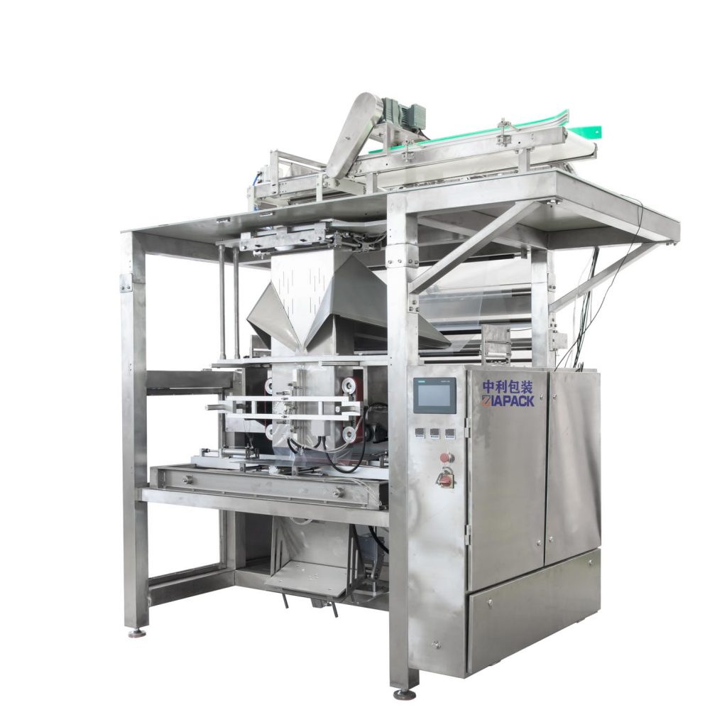 هذه الآلة مناسبة لتعبئة الأكياس الصغيرة في كيس كبير. يمكن للآلة صنع الحقيبة الكبيرة تلقائيًا وتعبئة الكيس الصغير ثم ختم الكيس الكبير. هذه الآلة بما في ذلك الوحدات التالية: